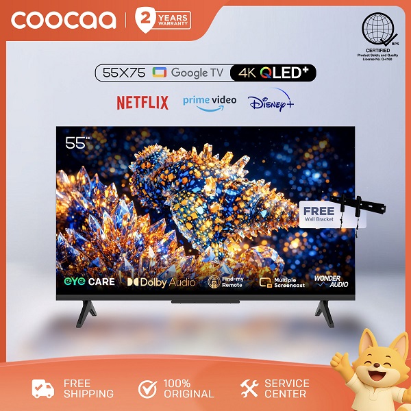 Article Title:《₱22299【NEW】COOCAA 55 Inch QLED TV Dolby Audio, Eye Care, Screen Cast, Find My Remote(55X75)w/ wall bracket》