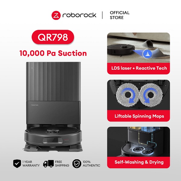 ₱19899【BEST VALUE】Roborock QR 798 Robot Vacuum cleaner 10,000Pa HyperForce Suction Dual Anti-Tangle Brush 360° LiDAR Navigation Auto Mop Self-Washing & Drying