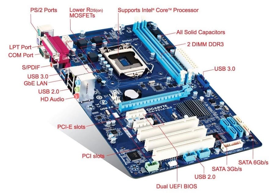 | CPU Socket | Holds the processor (e.g., LGA1700 for Intel, AM5 for AMD) |