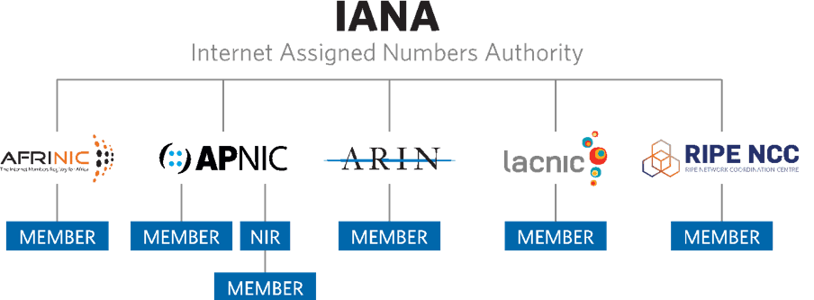 - Regional Internet Registries (RIRs):