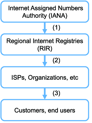 - Allocates large address blocks to Regional Internet Registries (RIRs).