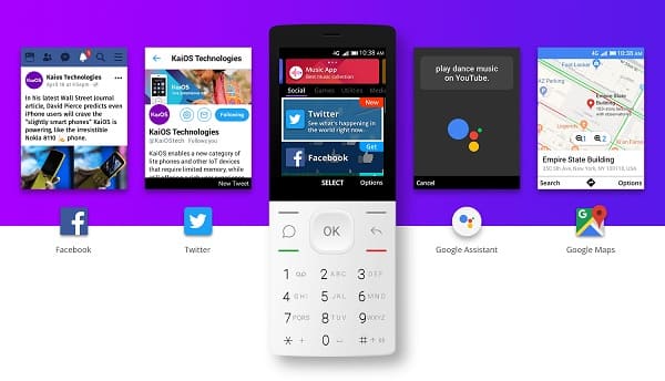 - App Store: KaiStore, offering WhatsApp, YouTube, Facebook, Google Maps, etc.